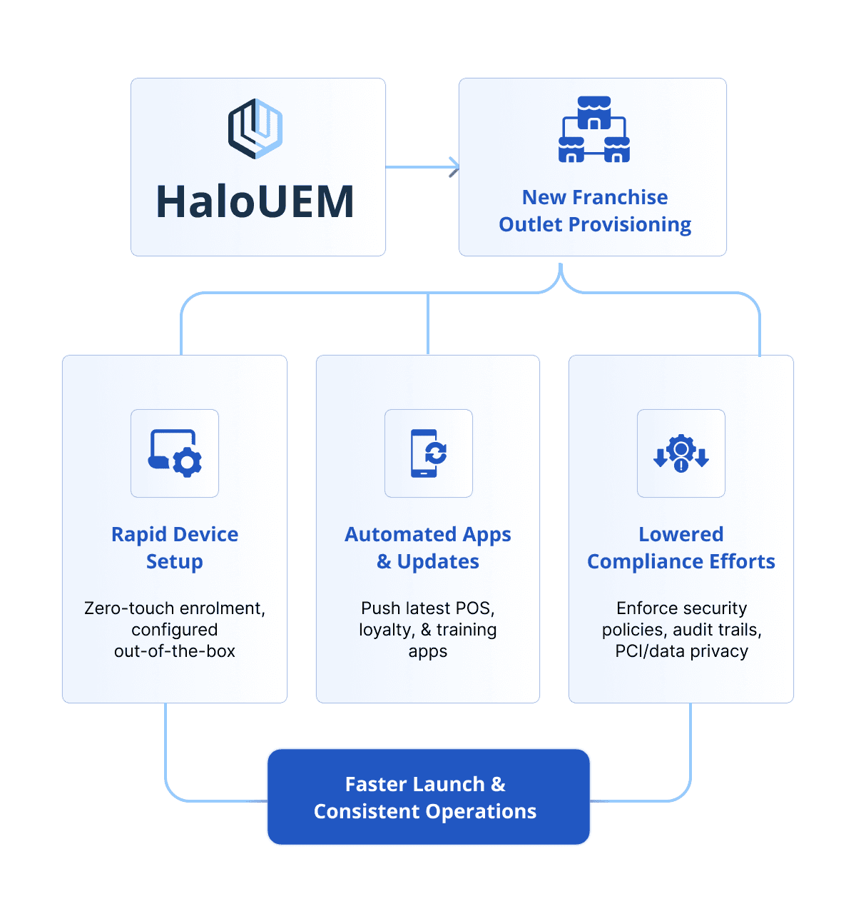 40% faster outlet onboarding with zero-touch device enrollment and templated policies.