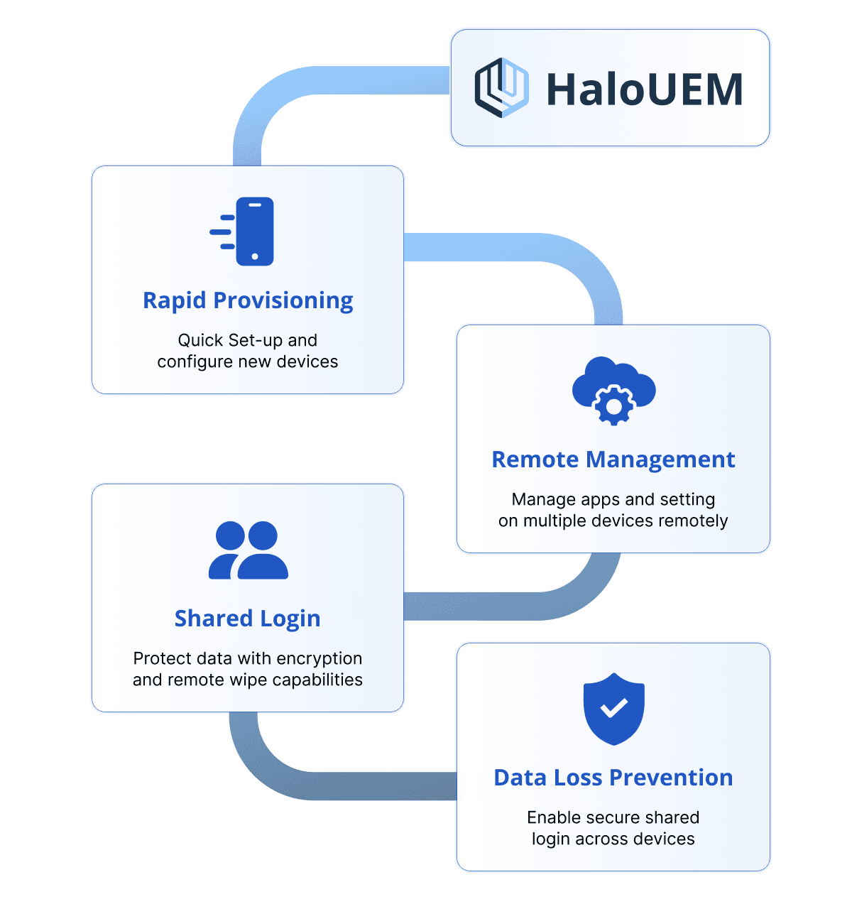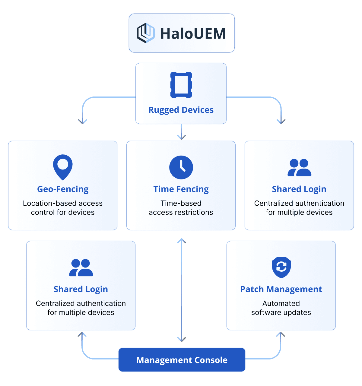 HaloFort unites HaloUEM and HaloTrust to secure frontline endpoints, enforce compliance, and protect manufacturing and retail from misuse and breaches.