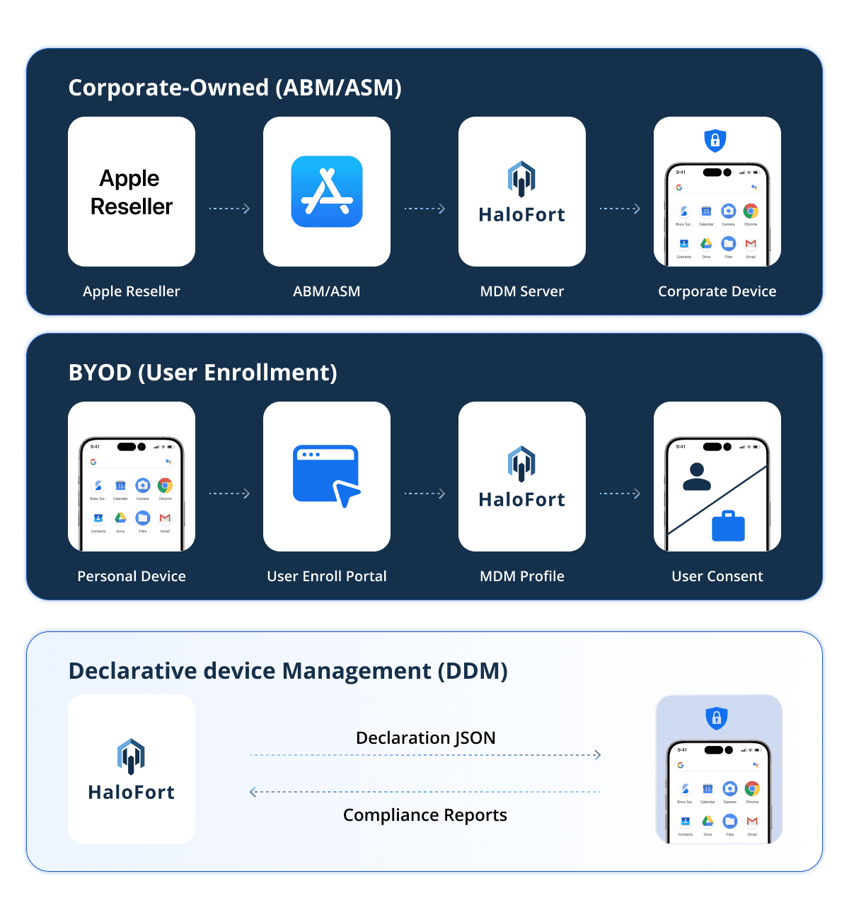 Securely manage your entire fleet of iOS and iPadOS devices, from personal BYOD to corporate-owned, with HaloFort.