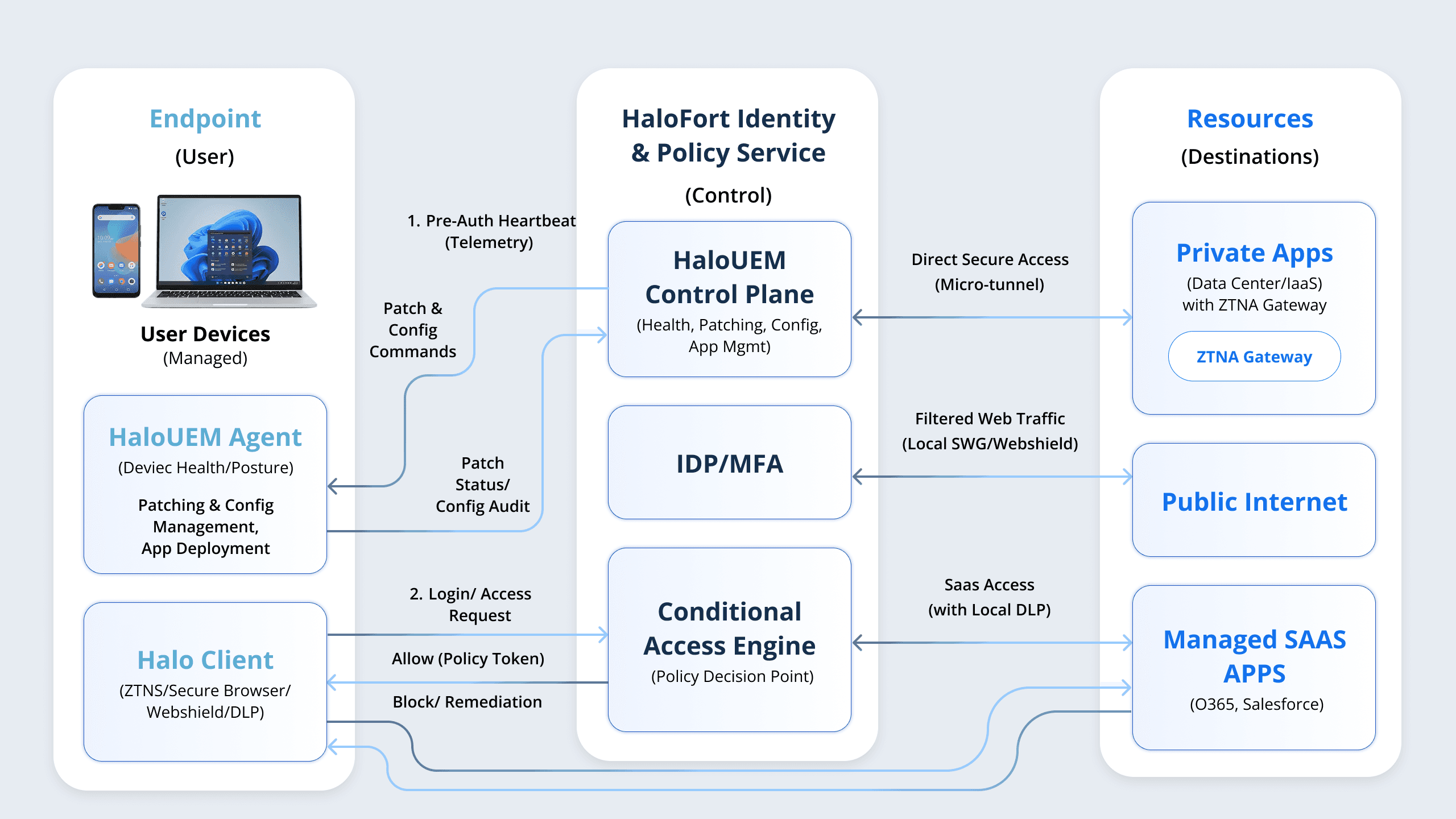 HaloTrust verifies users and devices in real-time to secure applications, networks, and data—integrating seamlessly with UEM for contextual access decisions.