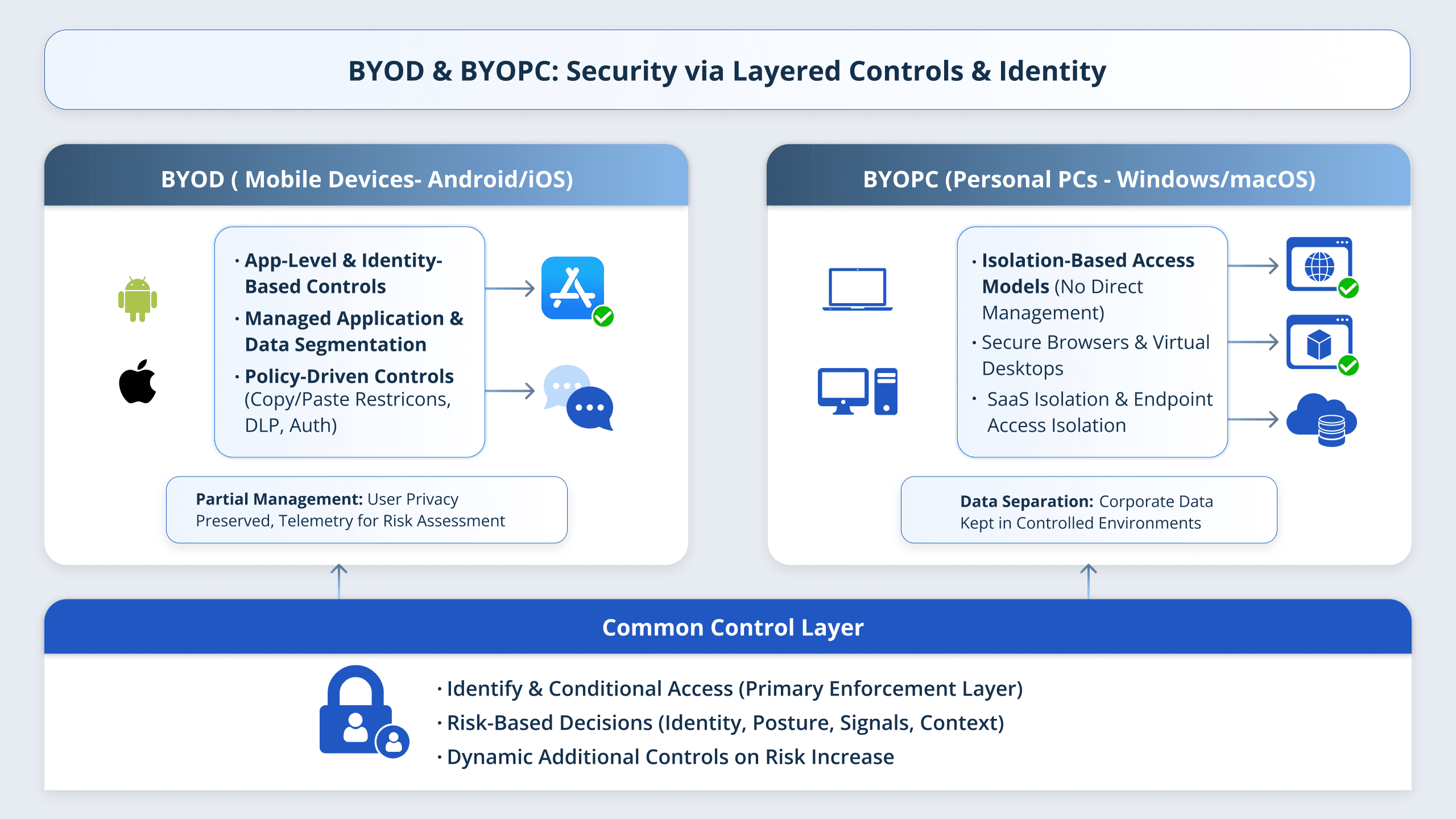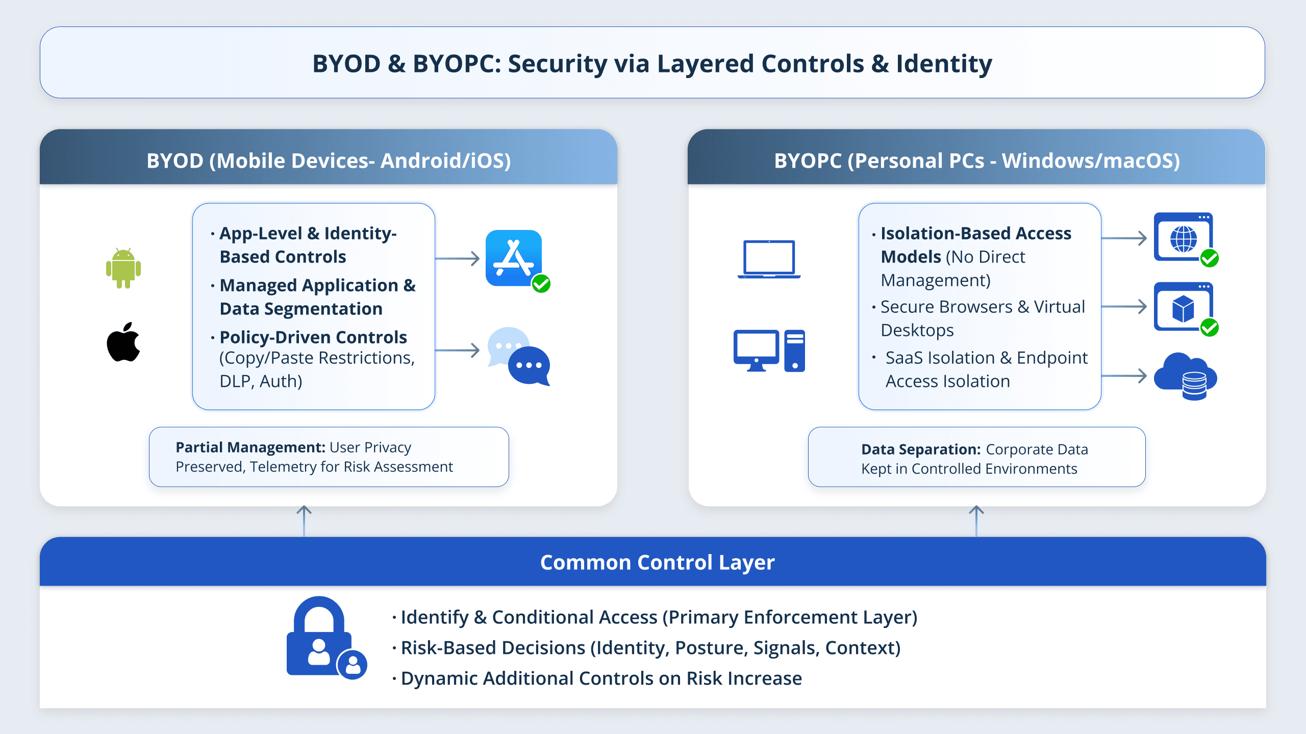 Applies distinct policies for personal and work apps, reducing compliance risks.
